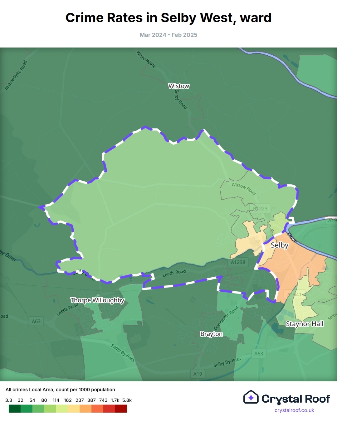 Selby West, (ward) includes areas with the following crime ratings (see map):