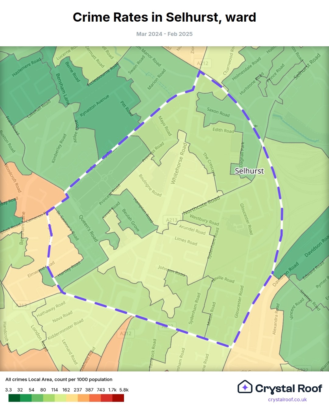 Selhurst, (ward) includes areas with the following crime ratings (see map):