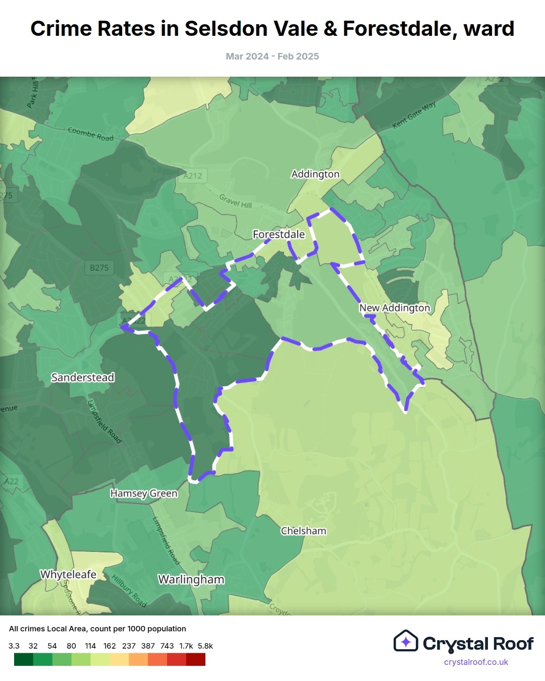 Selsdon Vale & Forestdale, (ward) includes areas with the following crime ratings (see map):