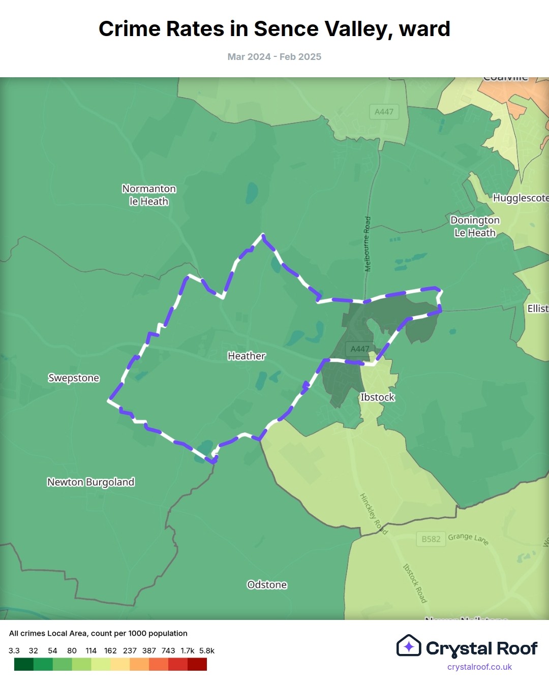 Sence Valley, (ward) includes areas with the following crime ratings (see map):