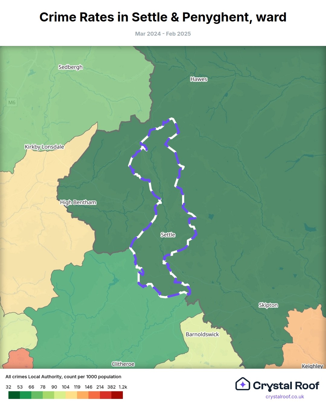 Settle & Penyghent, (ward) includes areas with the following crime ratings (see map):