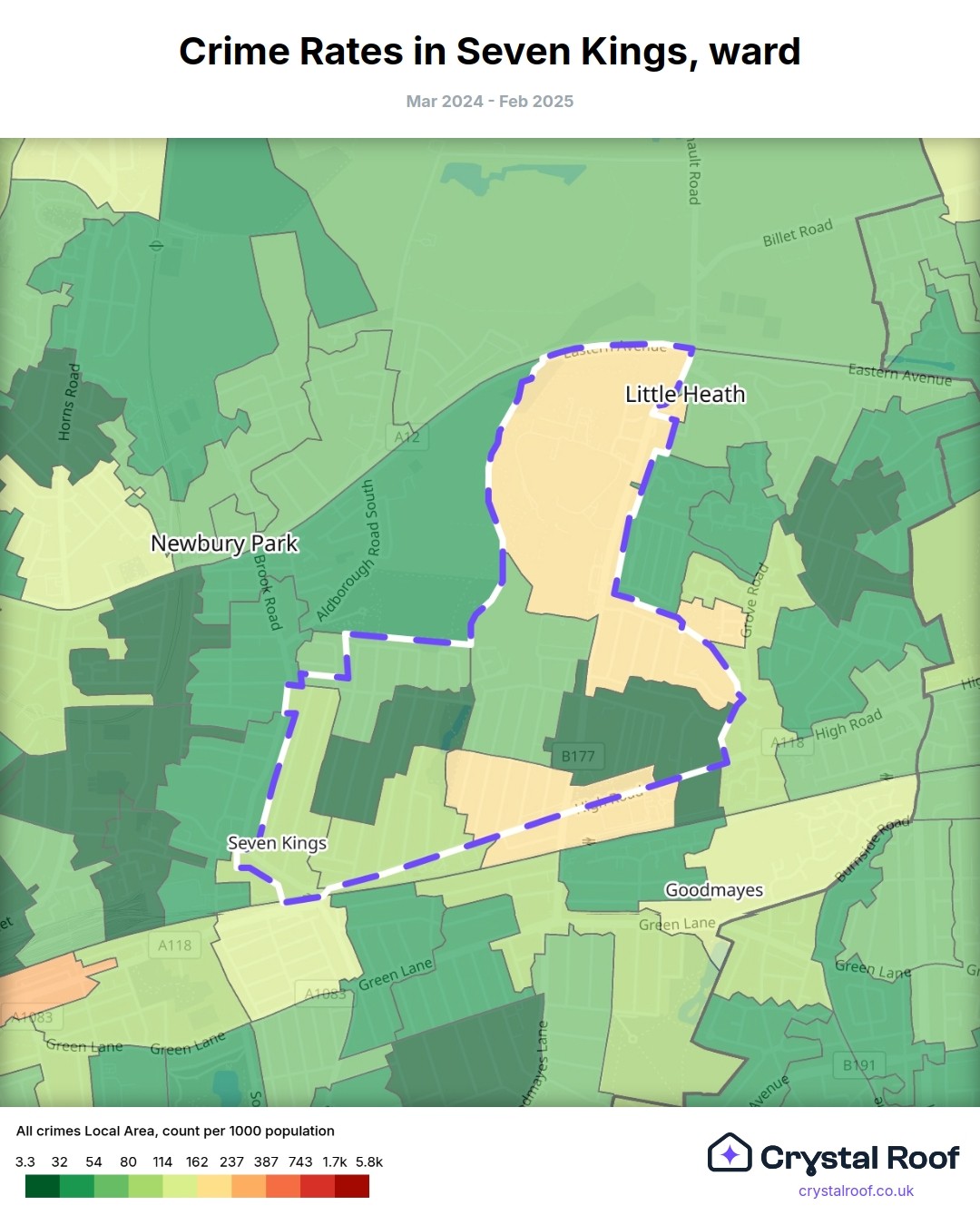 Seven Kings, (ward) includes areas with the following crime ratings (see map):