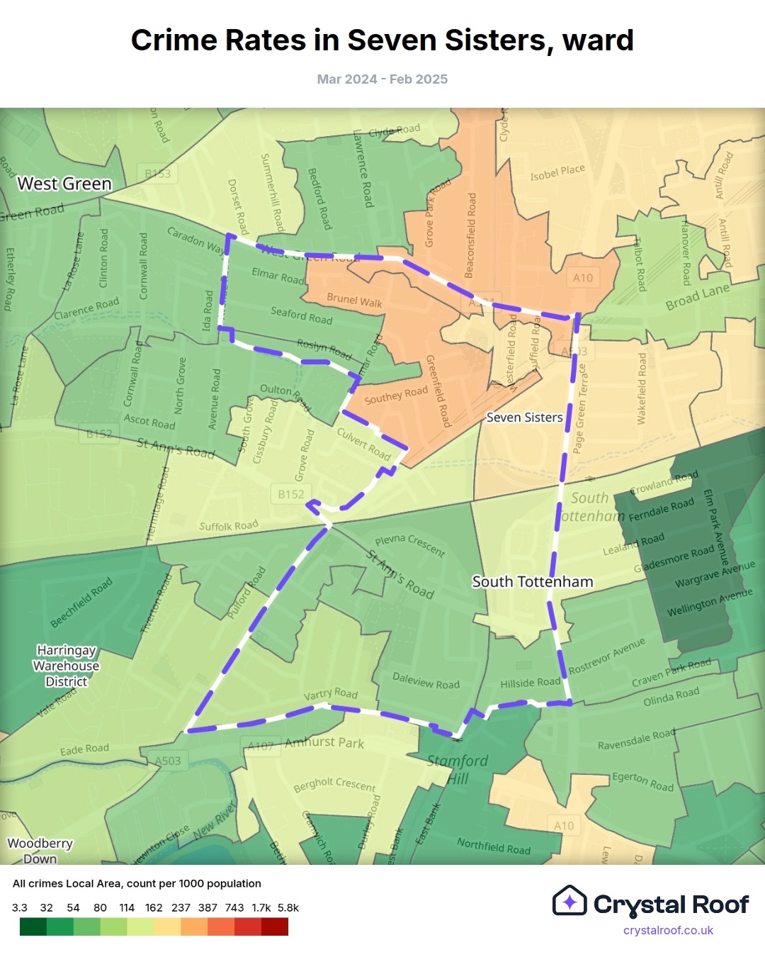Seven Sisters, (ward) includes areas with the following crime ratings (see map):