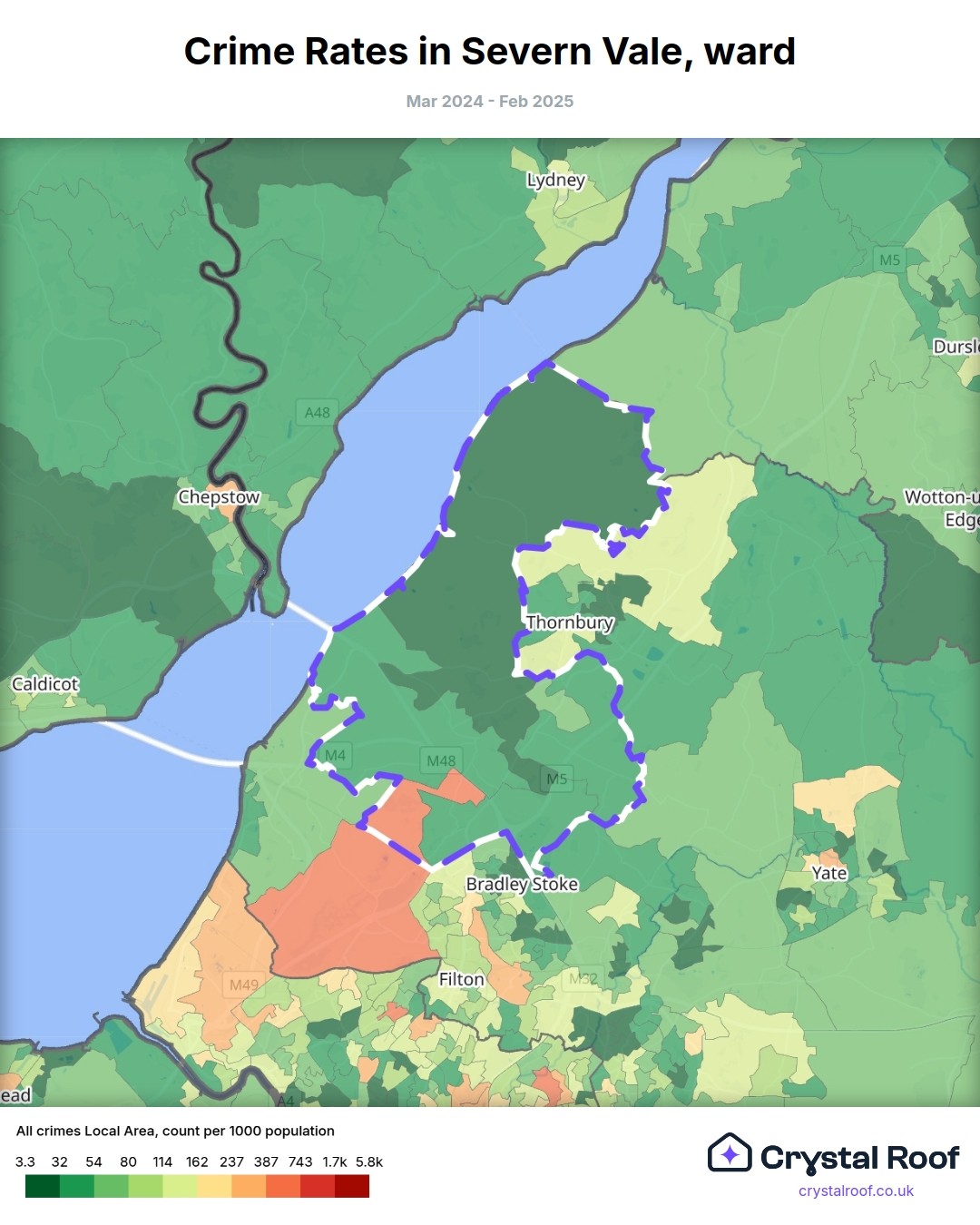 Severn Vale, (ward) includes areas with the following crime ratings (see map):