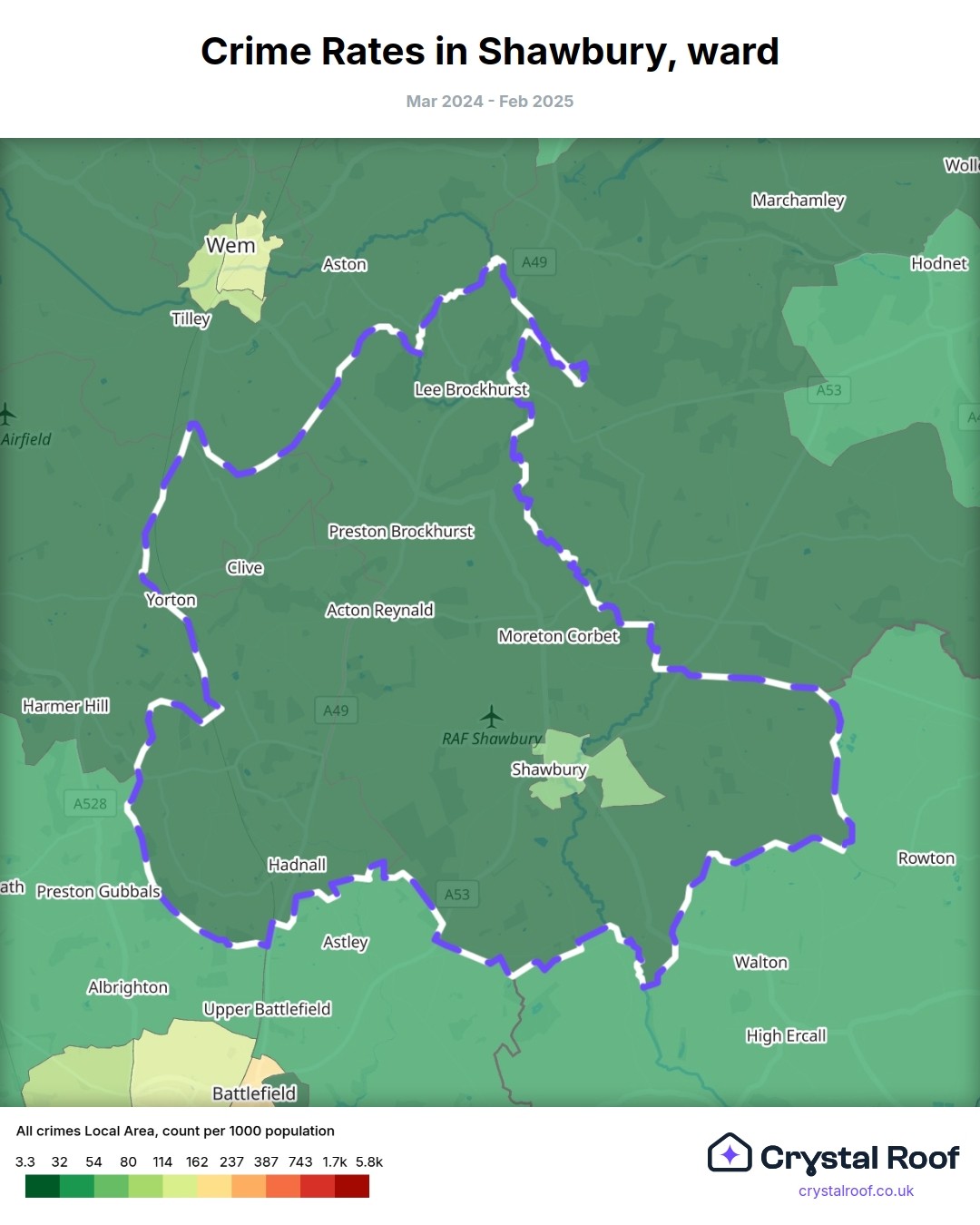 Shawbury, (ward) includes areas with the following crime ratings (see map):