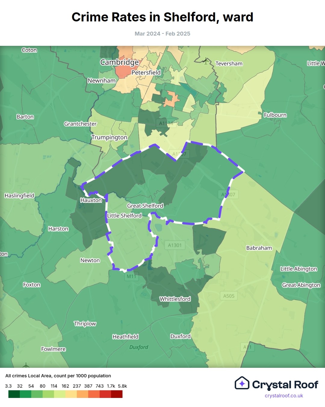 Shelford, (ward) includes areas with the following crime ratings (see map):