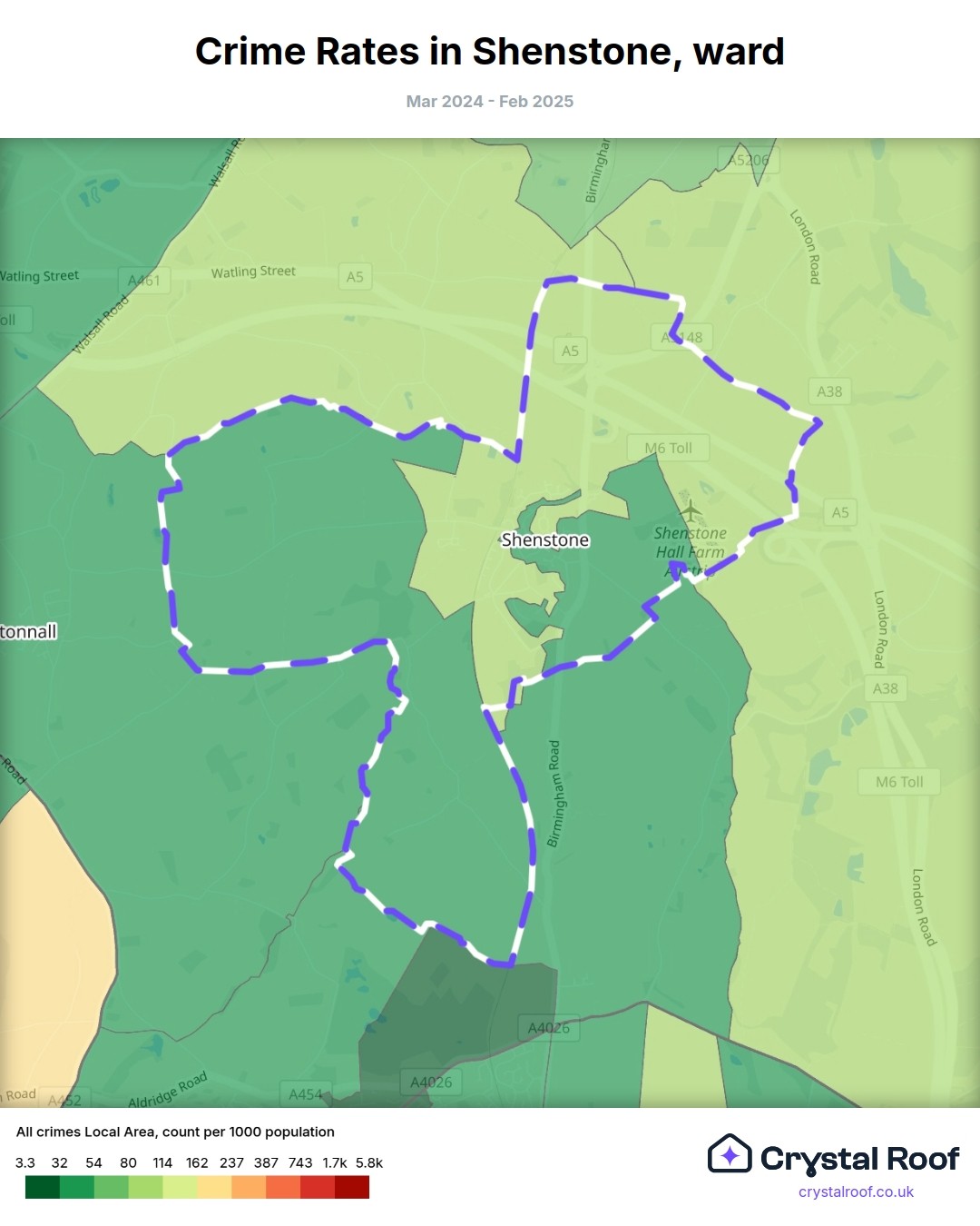 Shenstone, (ward) includes areas with the following crime ratings (see map):