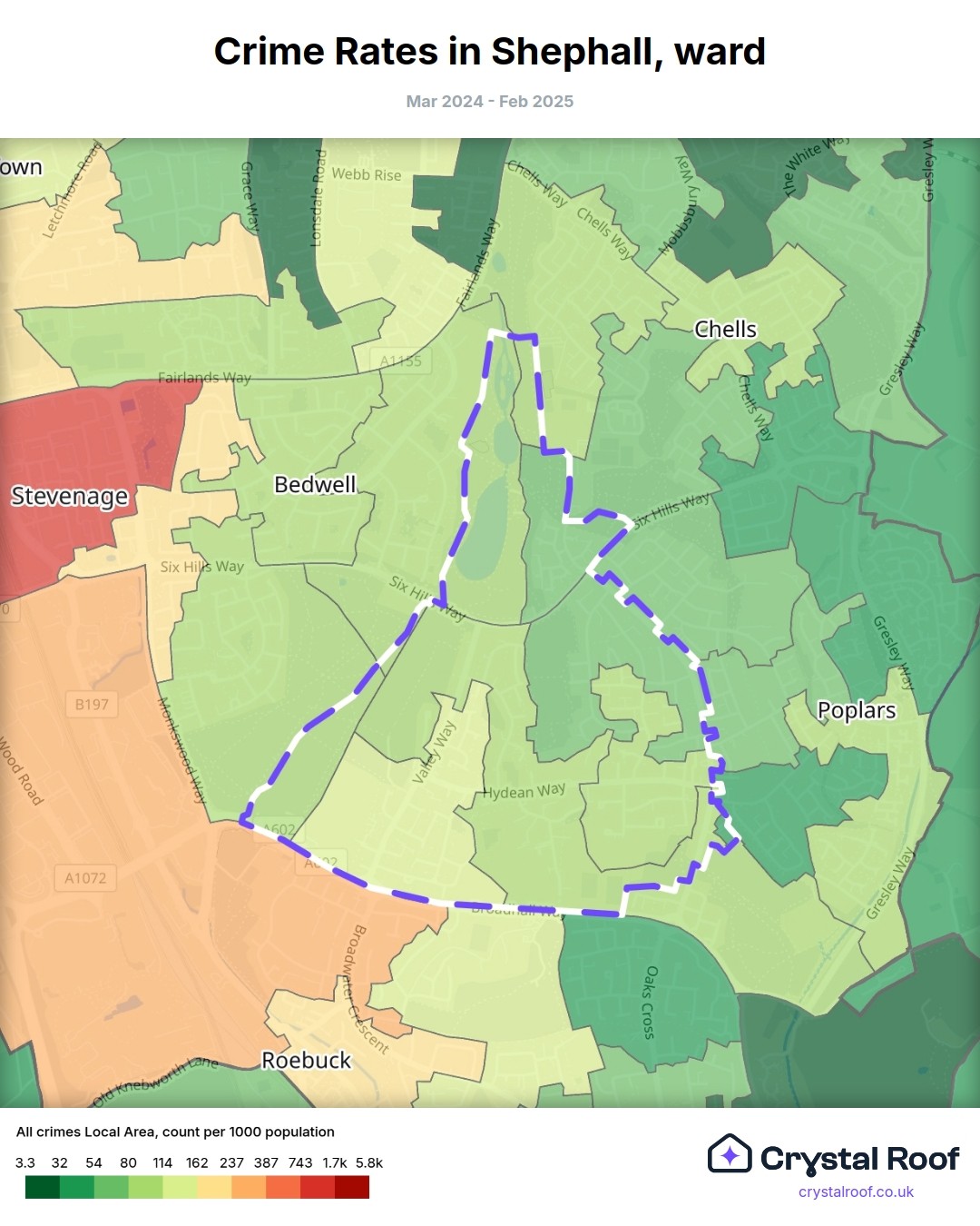 Shephall, (ward) includes areas with the following crime ratings (see map):