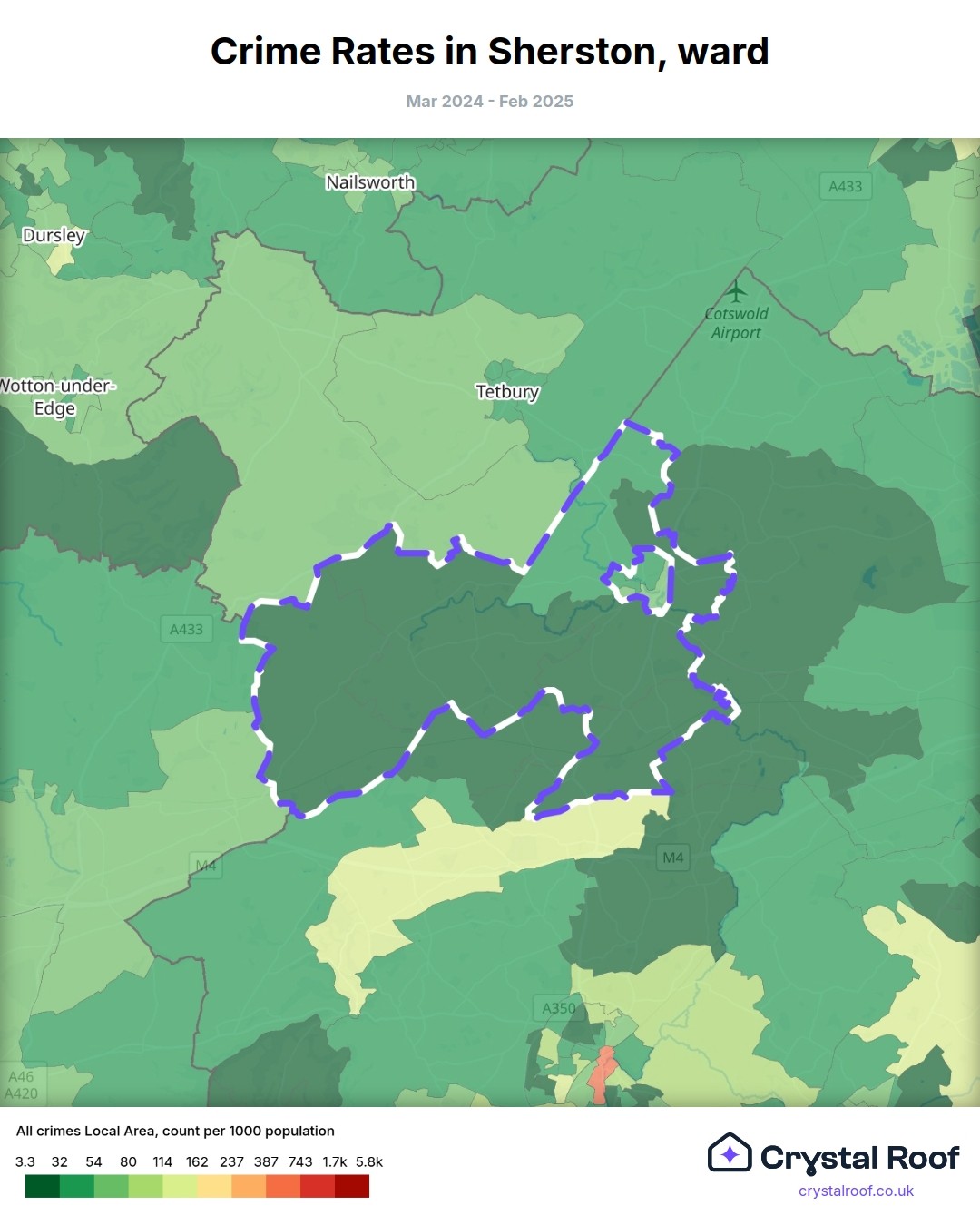 Sherston, (ward) includes areas with the following crime ratings (see map):