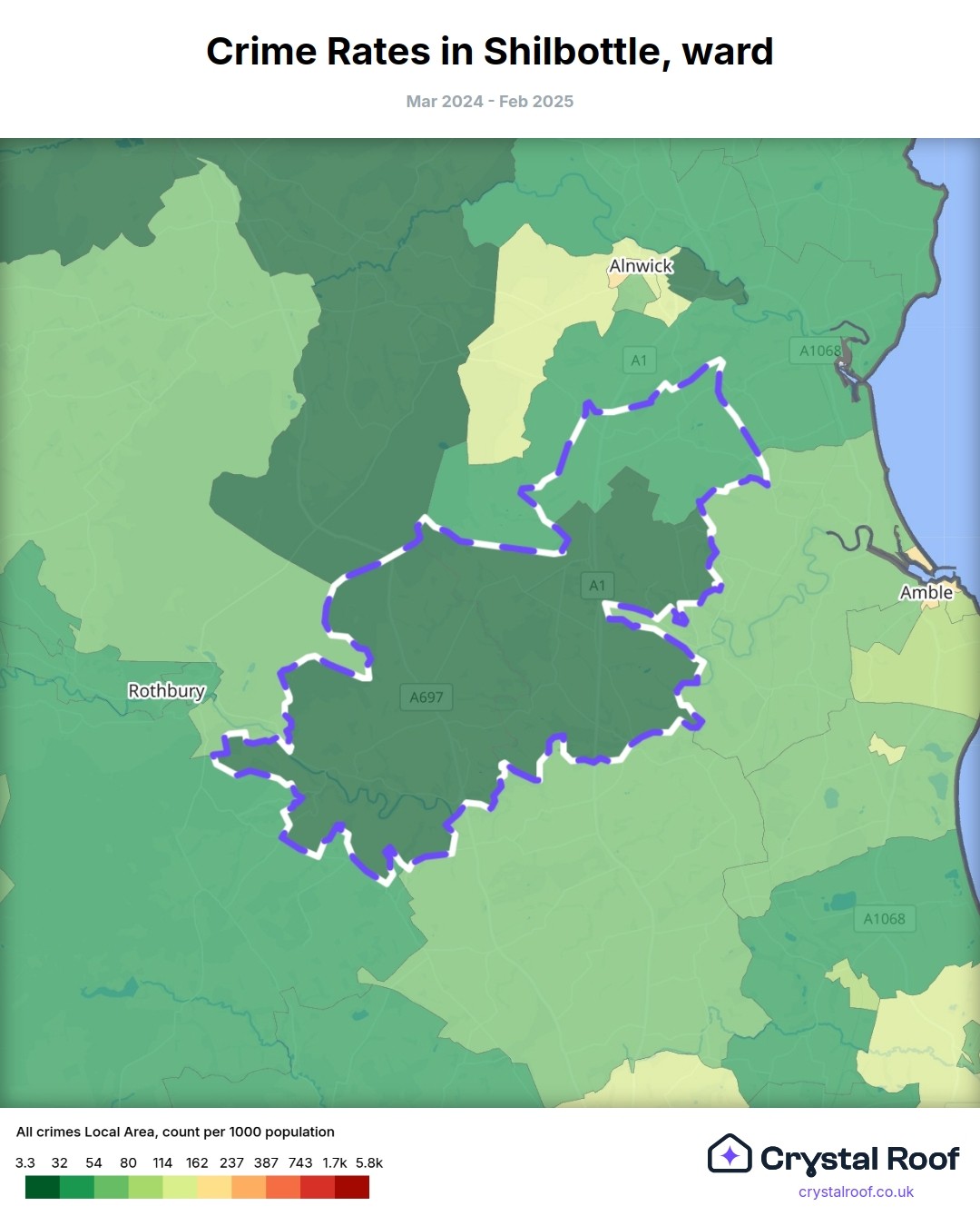 Shilbottle, (ward) includes areas with the following crime ratings (see map):