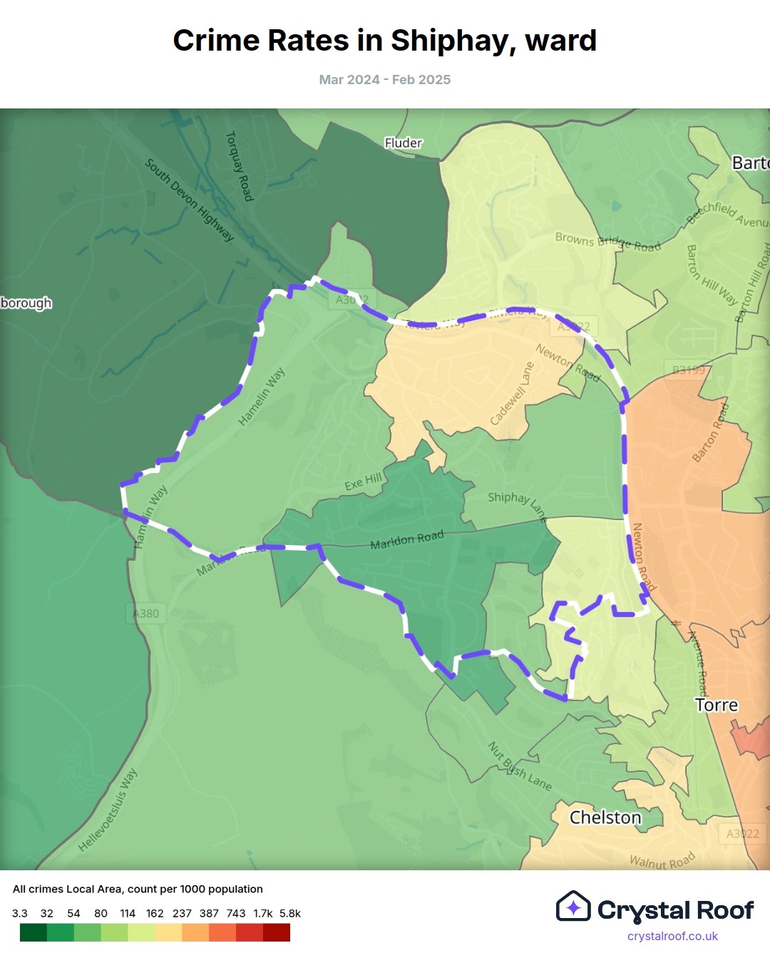 Shiphay, (ward) includes areas with the following crime ratings (see map):