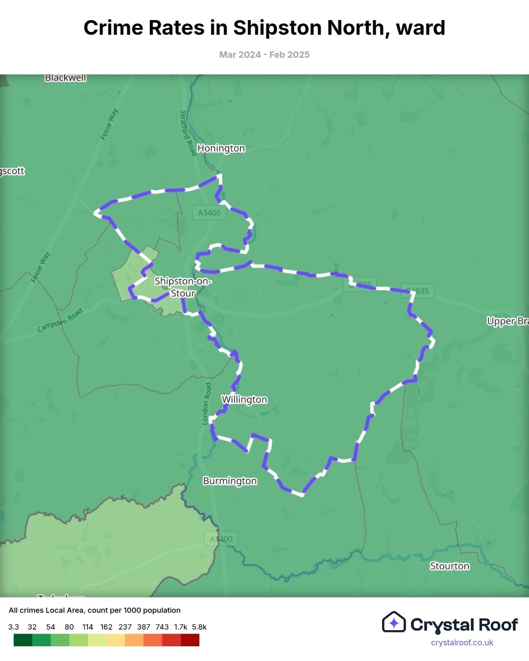 The figures in grey indicate the relative ratings of Shipston North (ward) for a specific crime type compared to other wards in England and Wales.