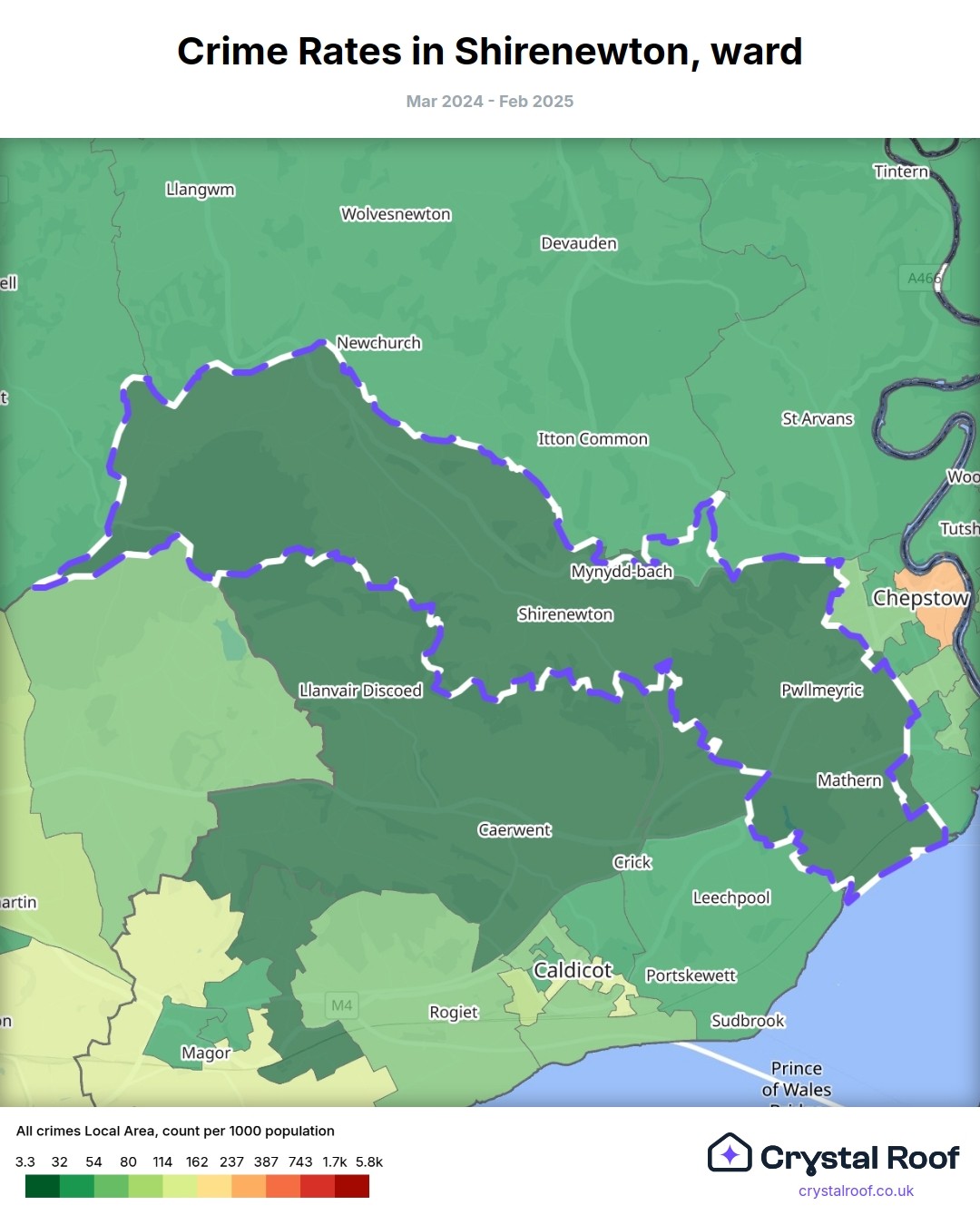 Shirenewton, (ward) includes areas with the following crime ratings (see map):