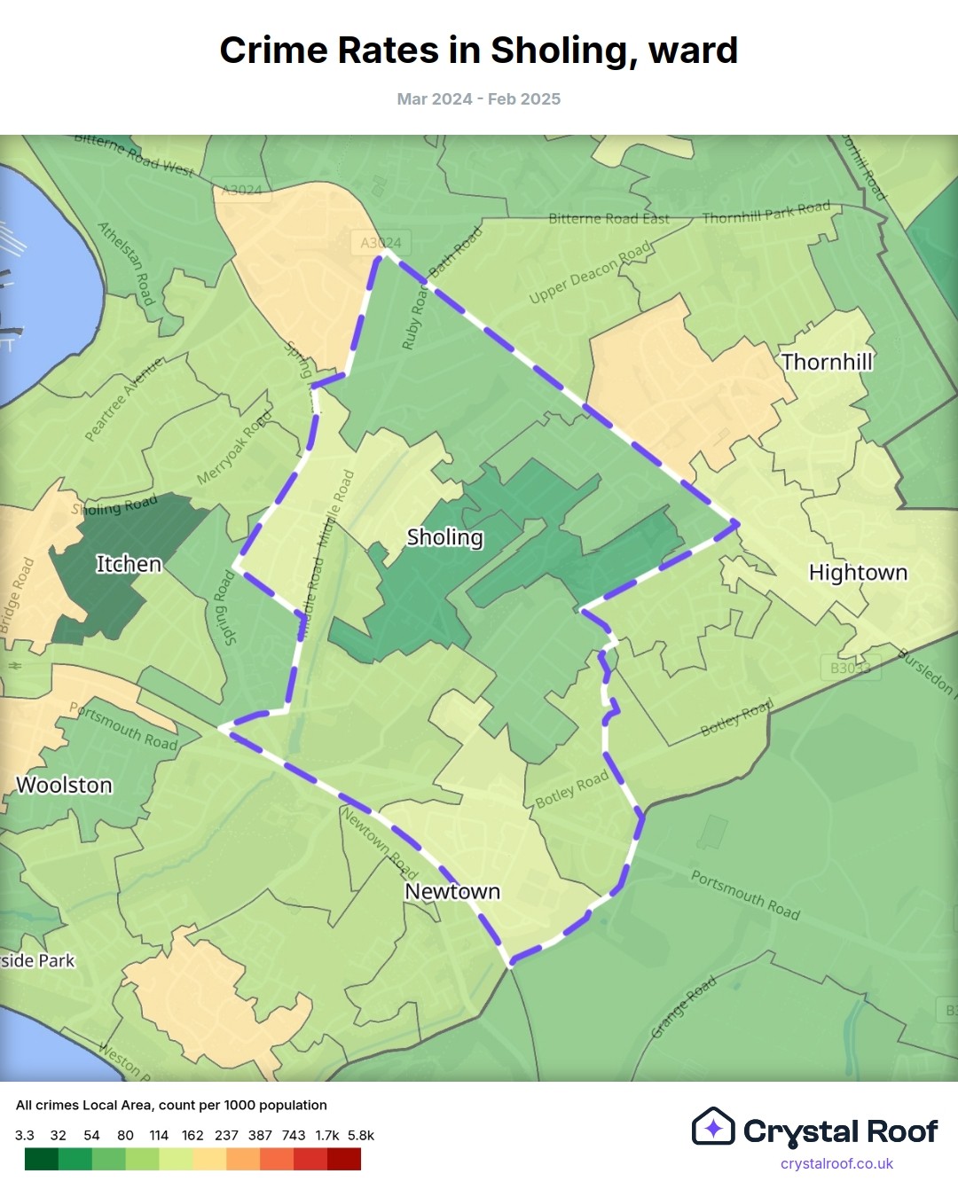 Sholing, (ward) includes areas with the following crime ratings (see map):
