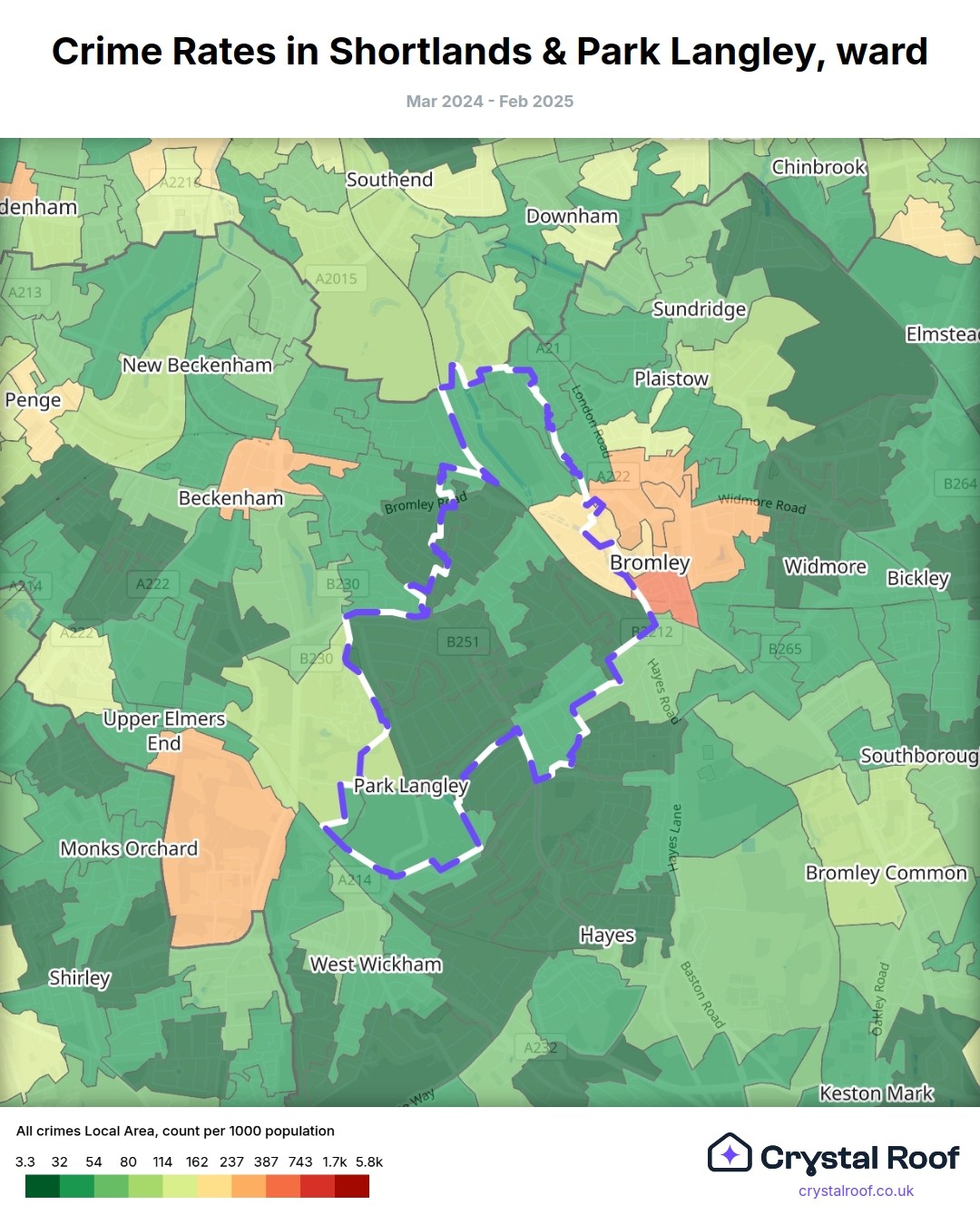 Shortlands & Park Langley, (ward) includes areas with the following crime ratings (see map):