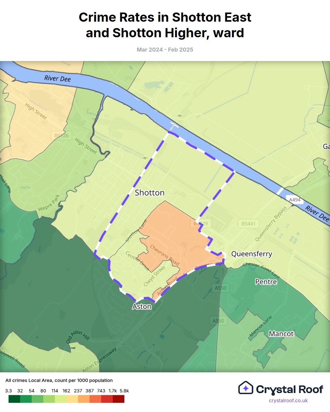 Shotton East and Shotton Higher, (ward) includes areas with the following crime ratings (see map):