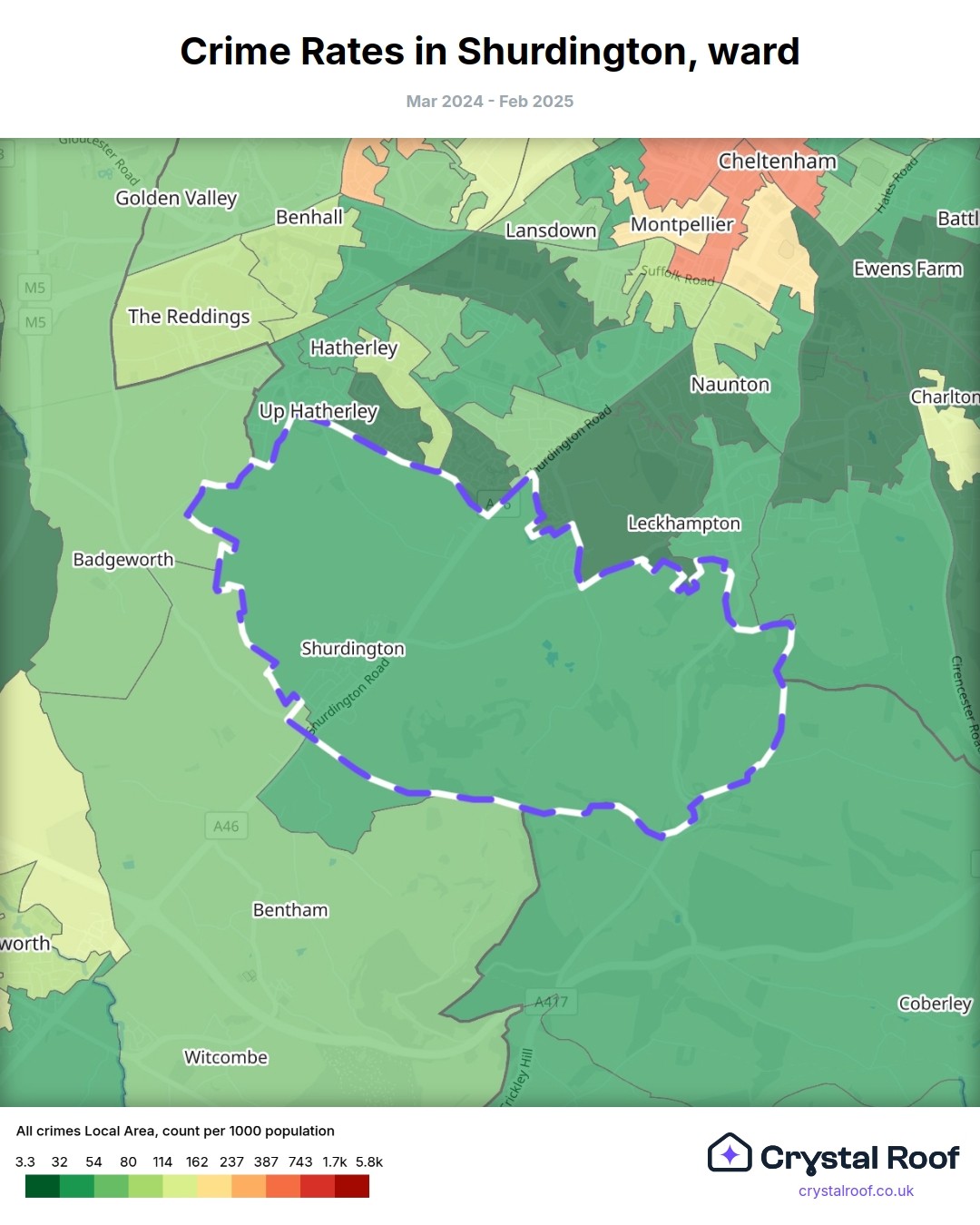 Shurdington, (ward) includes areas with the following crime ratings (see map):