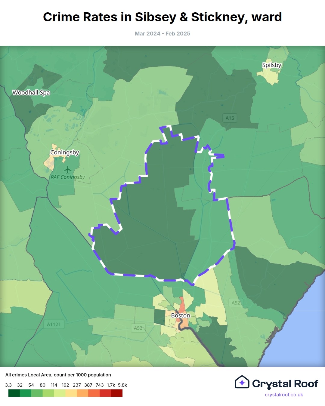 Sibsey & Stickney, (ward) includes areas with the following crime ratings (see map):