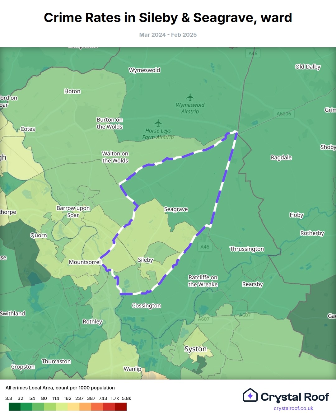 Sileby & Seagrave, (ward) includes areas with the following crime ratings (see map):