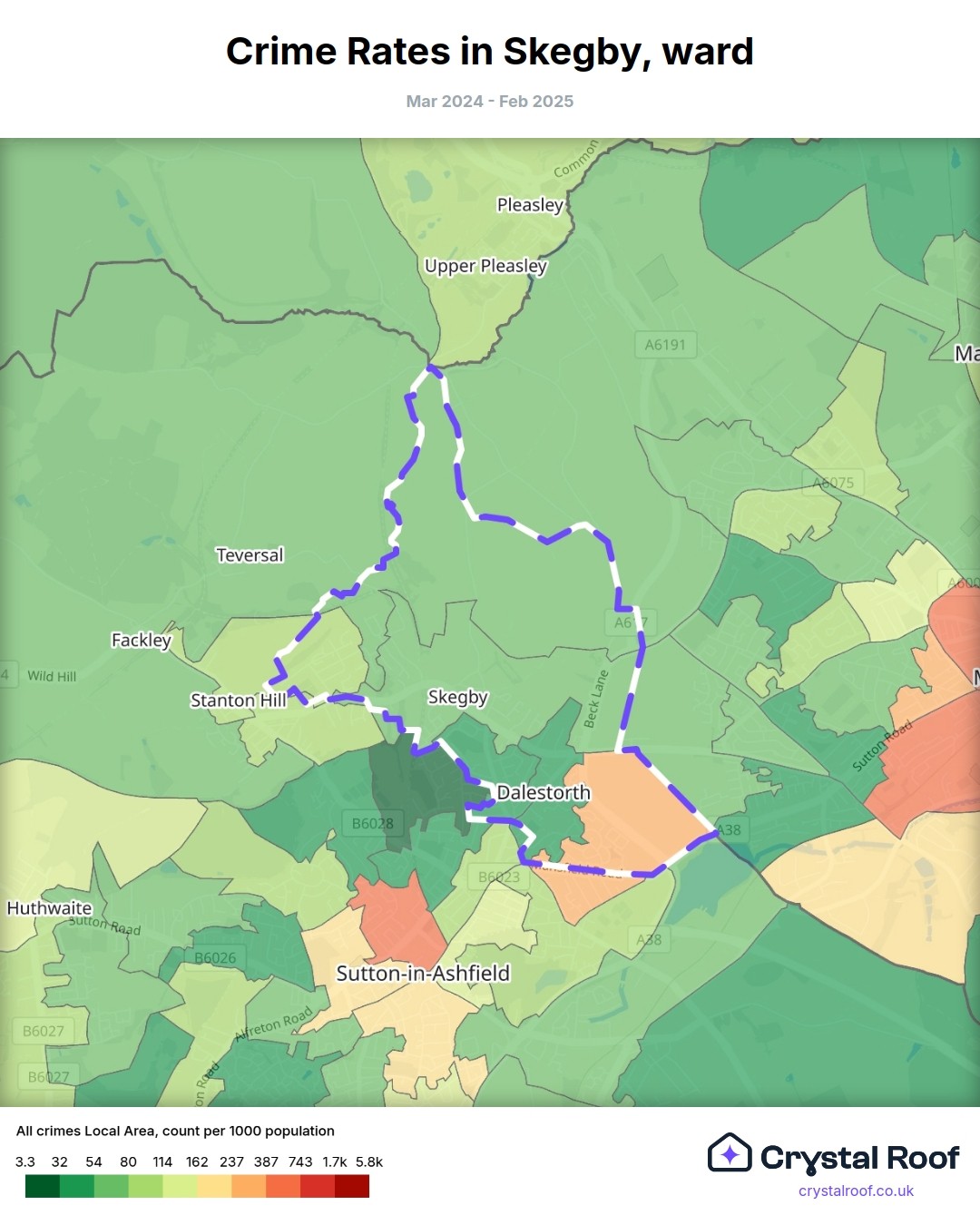 Skegby, (ward) includes areas with the following crime ratings (see map):