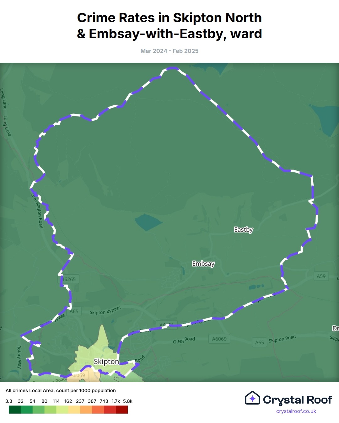 Skipton North & Embsay-with-Eastby, (ward) includes areas with the following crime ratings (see map):