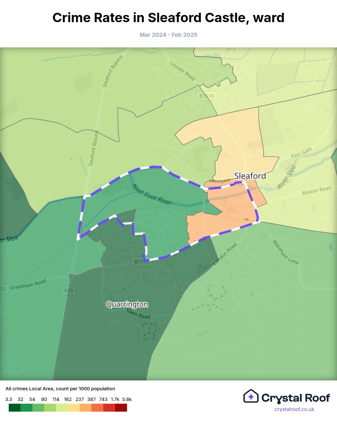 Sleaford Castle, (ward) includes areas with the following crime ratings (see map):