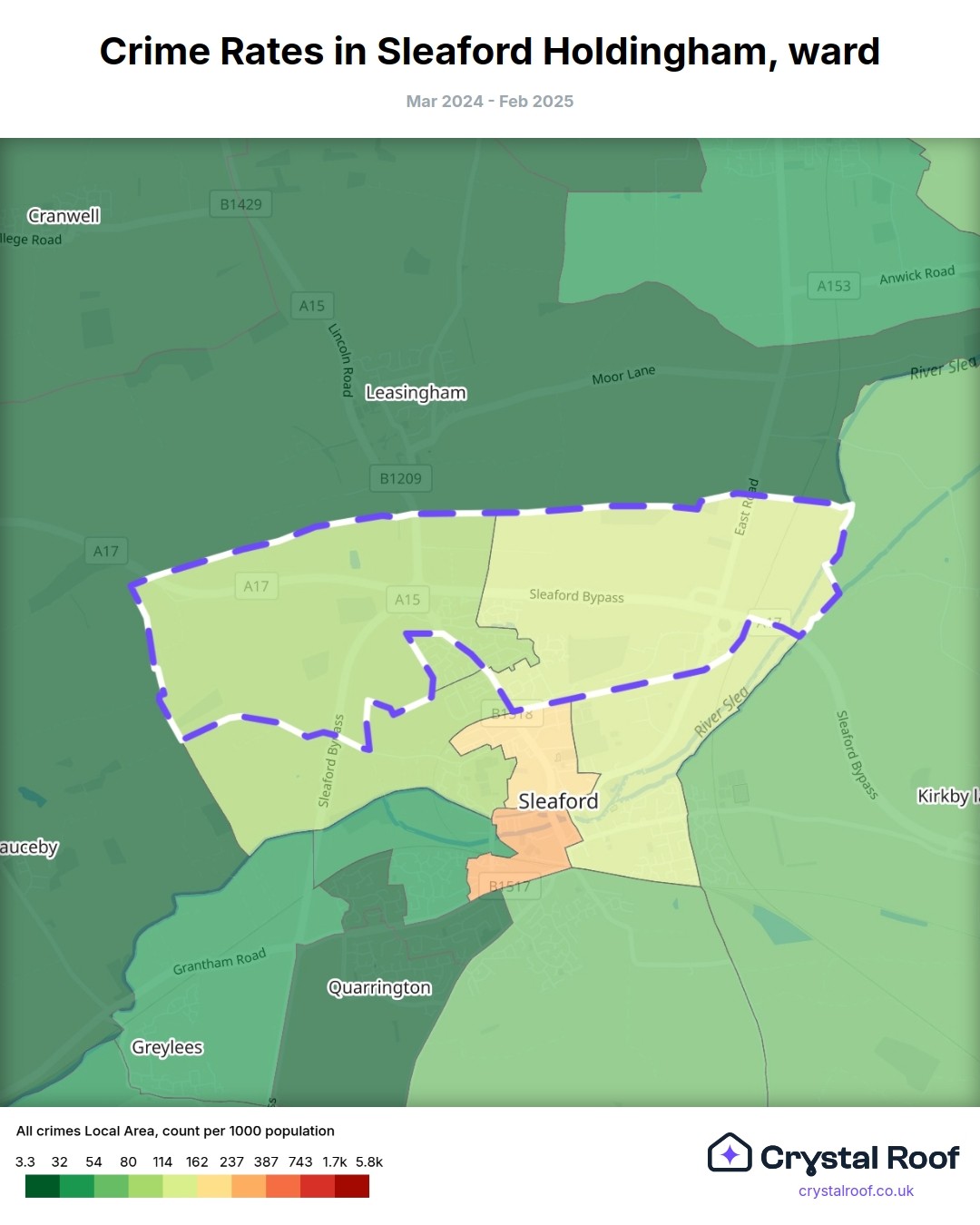 Sleaford Holdingham, (ward) includes areas with the following crime ratings (see map):