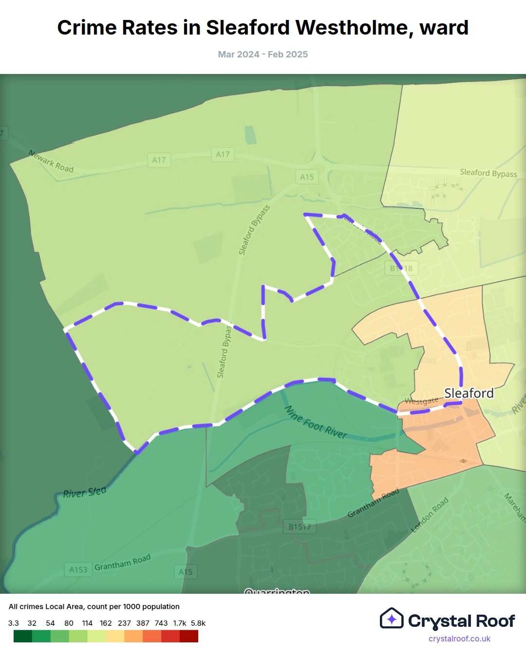 Sleaford Westholme, (ward) includes areas with the following crime ratings (see map):