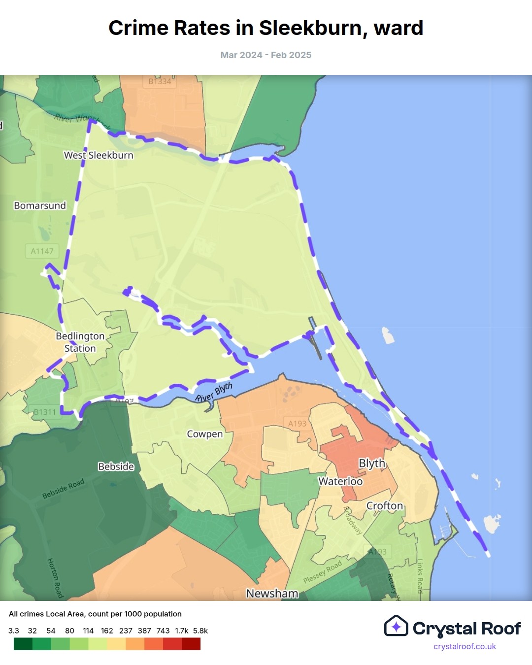 Sleekburn, (ward) includes areas with the following crime ratings (see map):