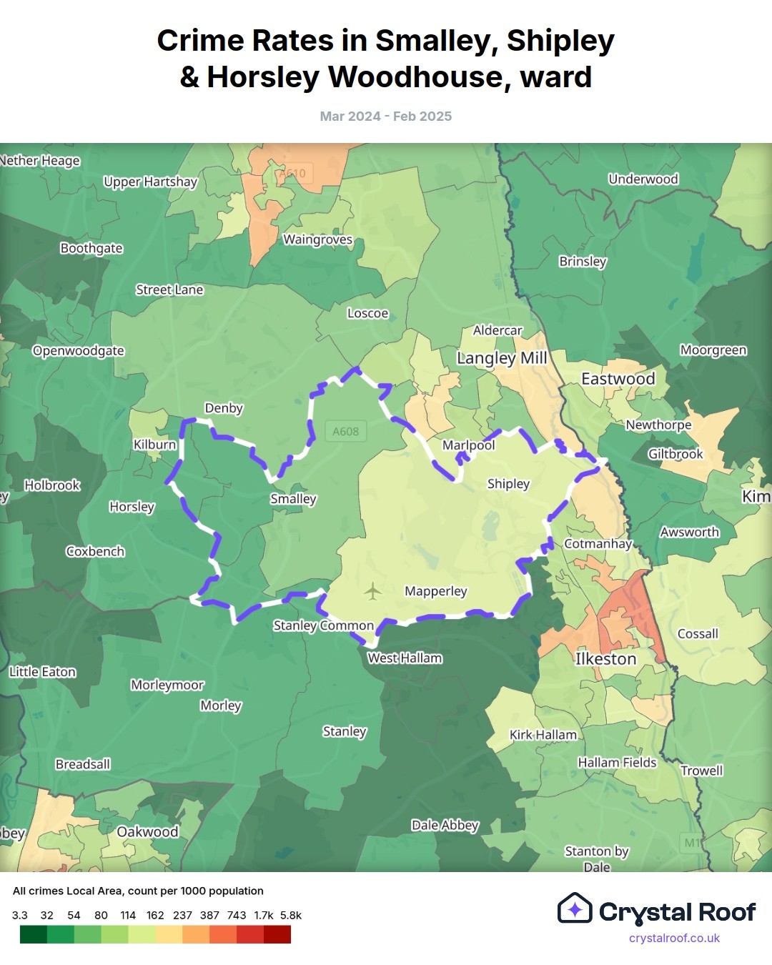Smalley, Shipley & Horsley Woodhouse, (ward) includes areas with the following crime ratings (see map):