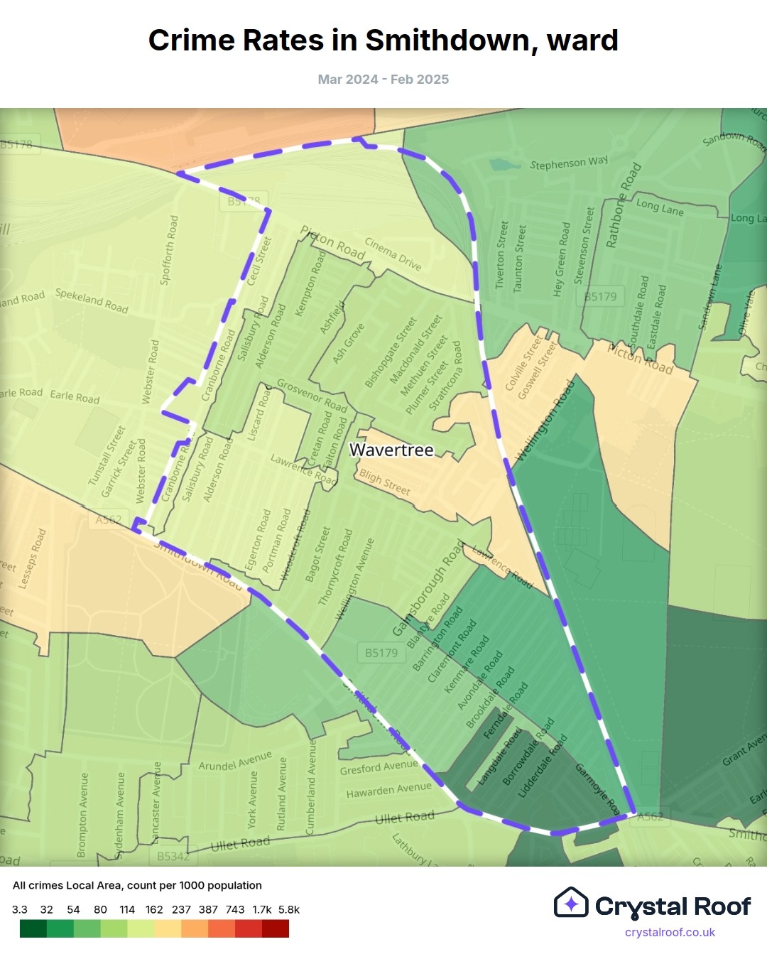 Smithdown, (ward) includes areas with the following crime ratings (see map):