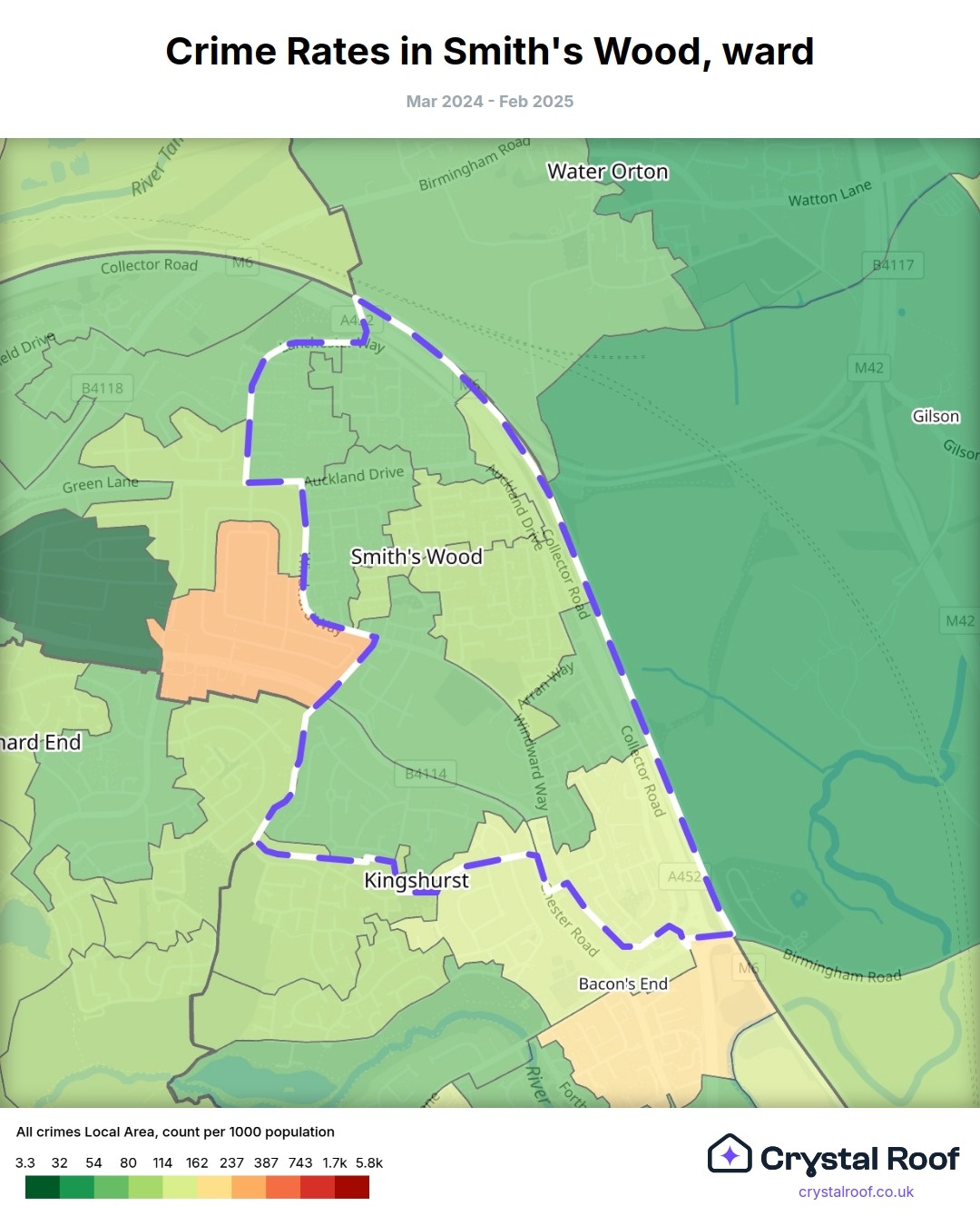 Smith's Wood, (ward) includes areas with the following crime ratings (see map):