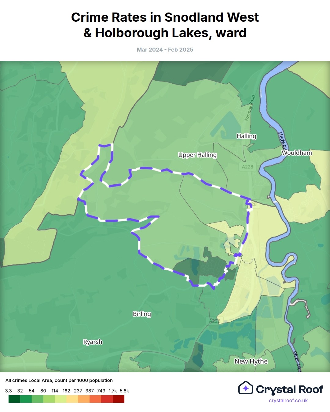 Snodland West & Holborough Lakes, (ward) includes areas with the following crime ratings (see map):