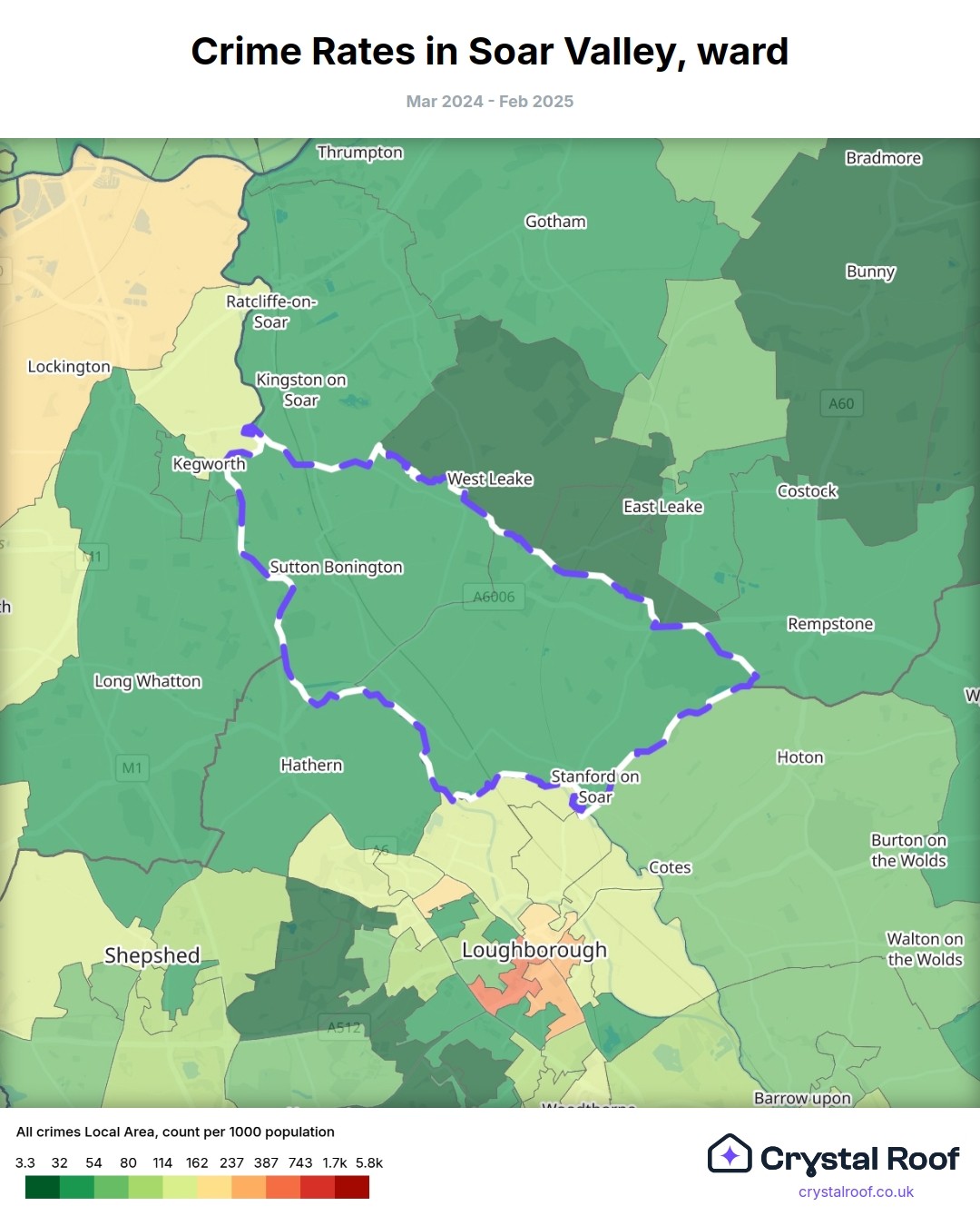 Soar Valley, (ward) includes areas with the following crime ratings (see map):