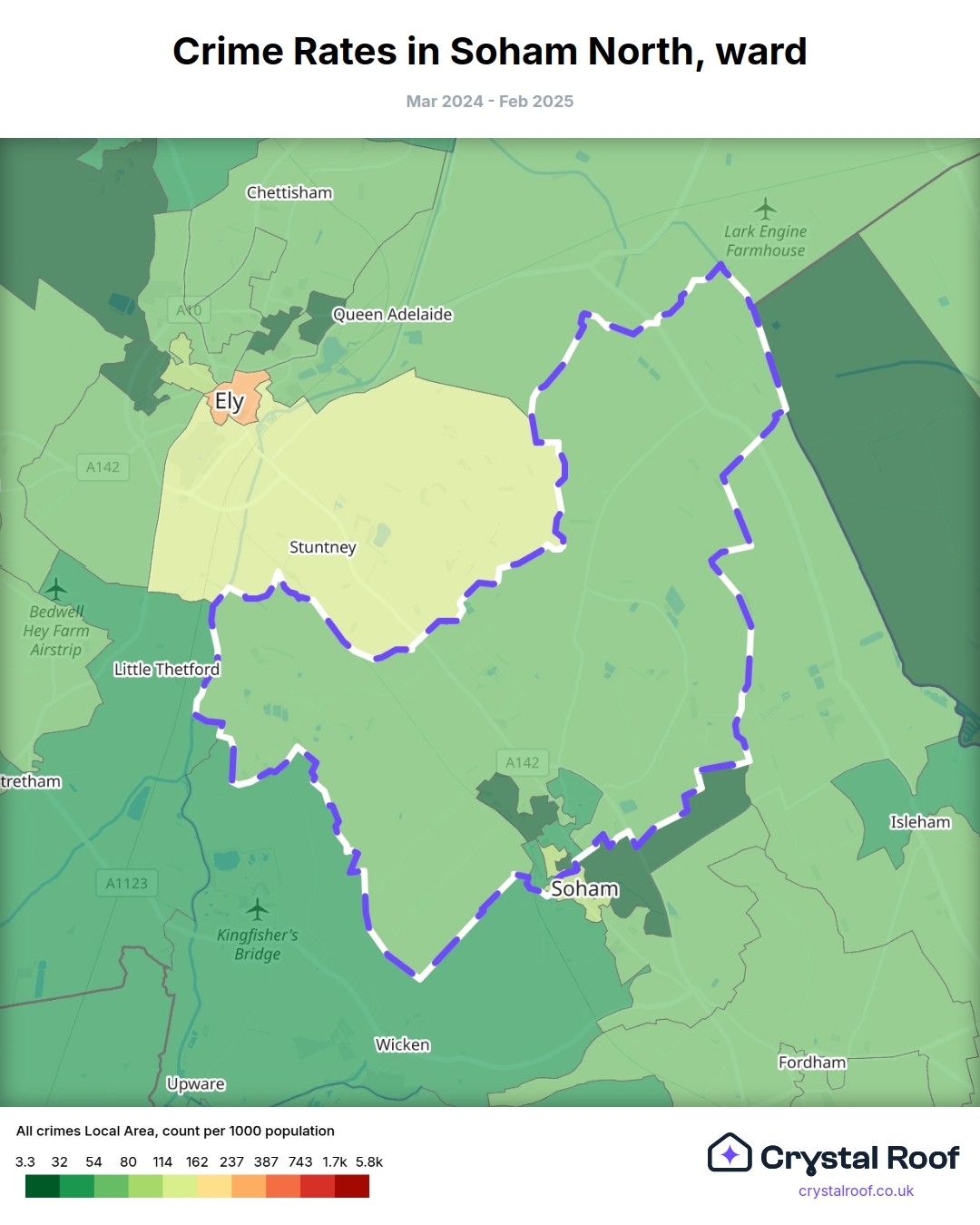 Soham North, (ward) includes areas with the following crime ratings (see map):