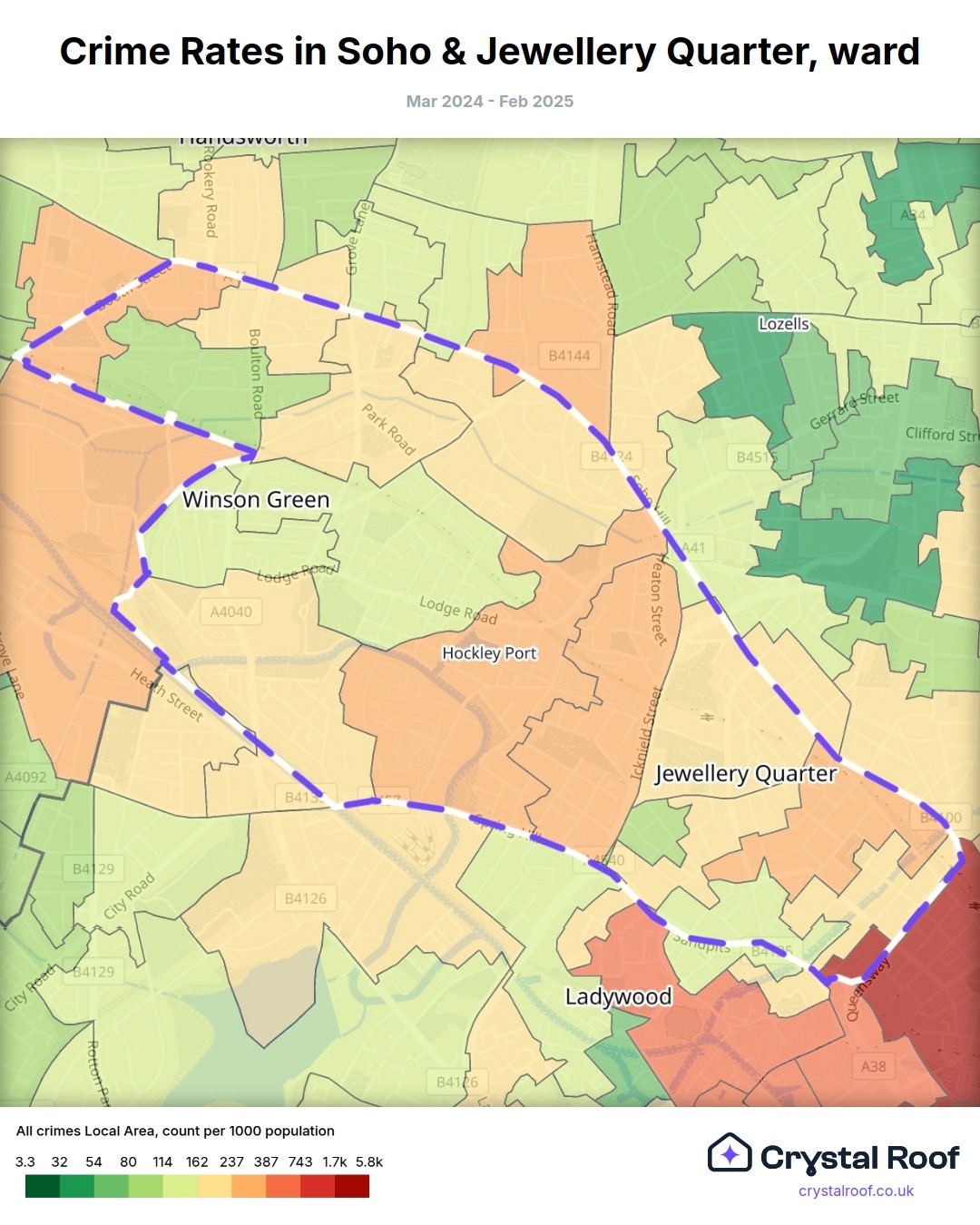 Soho & Jewellery Quarter, (ward) includes areas with the following crime ratings (see map):