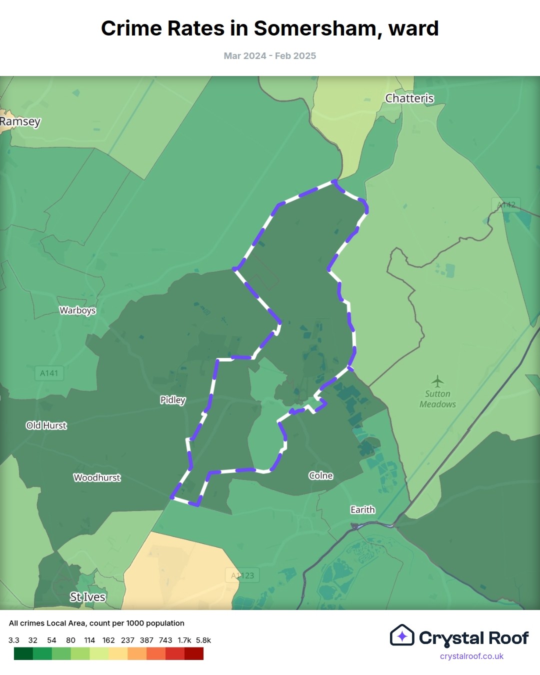 Somersham, (ward) includes areas with the following crime ratings (see map):