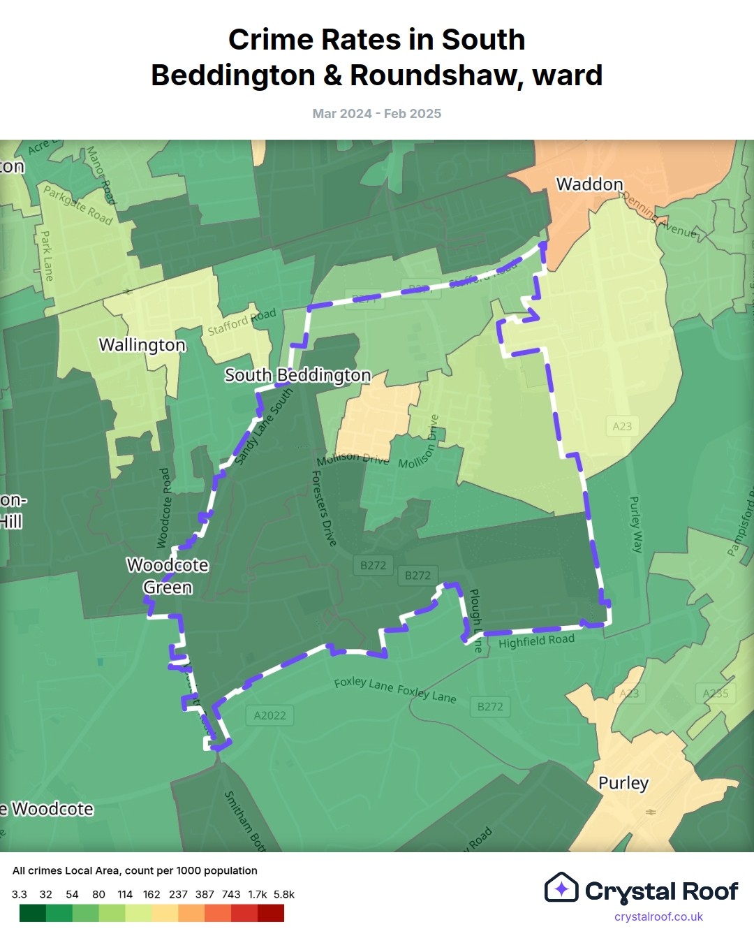South Beddington & Roundshaw, (ward) includes areas with the following crime ratings (see map):