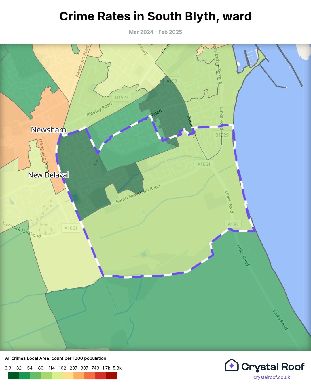 South Blyth, (ward) includes areas with the following crime ratings (see map):