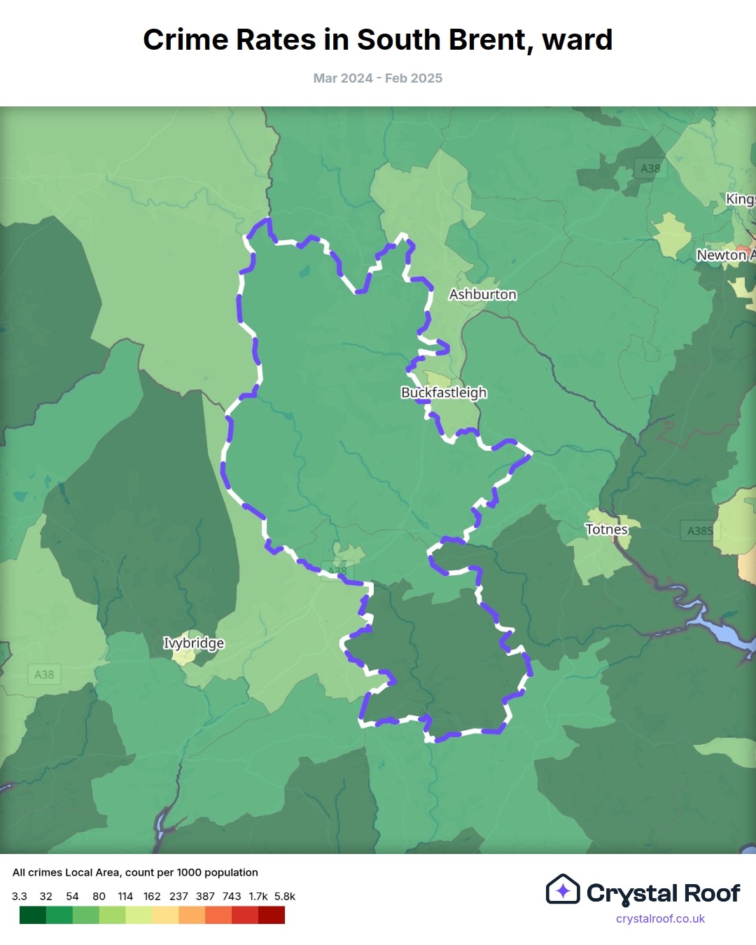 South Brent, (ward) includes areas with the following crime ratings (see map):