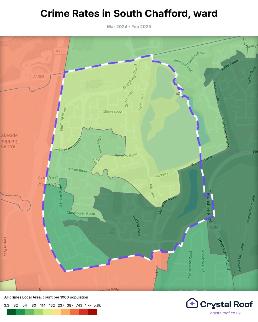 South Chafford, (ward) includes areas with the following crime ratings (see map):