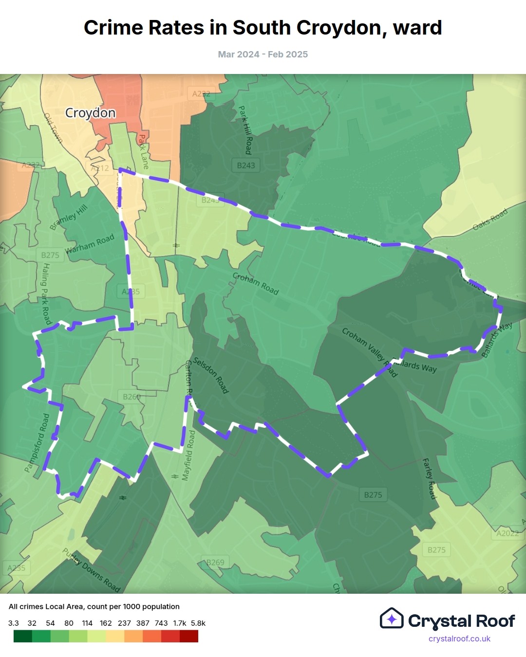 South Croydon, (ward) includes areas with the following crime ratings (see map):