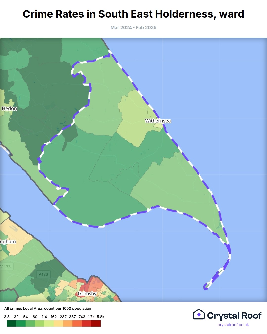 South East Holderness, (ward) includes areas with the following crime ratings (see map):