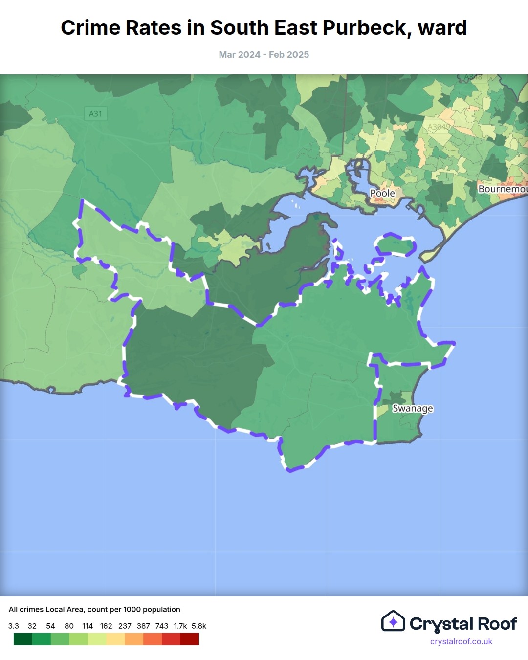 South East Purbeck, (ward) includes areas with the following crime ratings (see map):