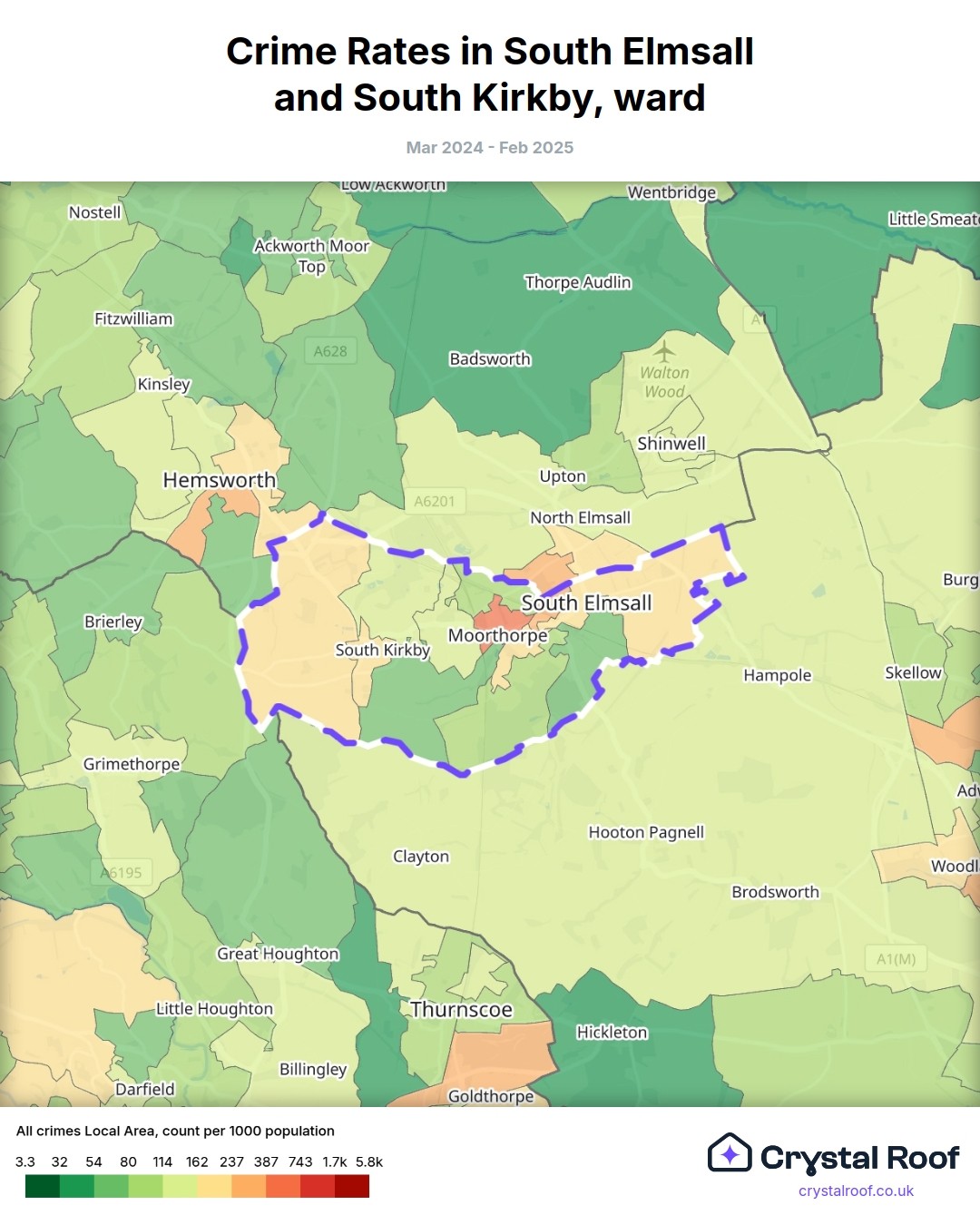 South Elmsall and South Kirkby, (ward) includes areas with the following crime ratings (see map):