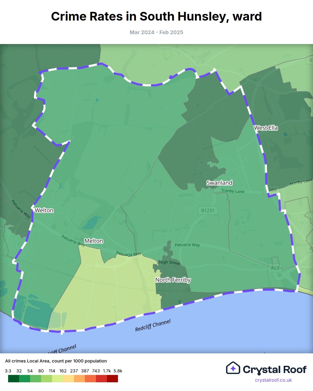 South Hunsley, (ward) includes areas with the following crime ratings (see map):