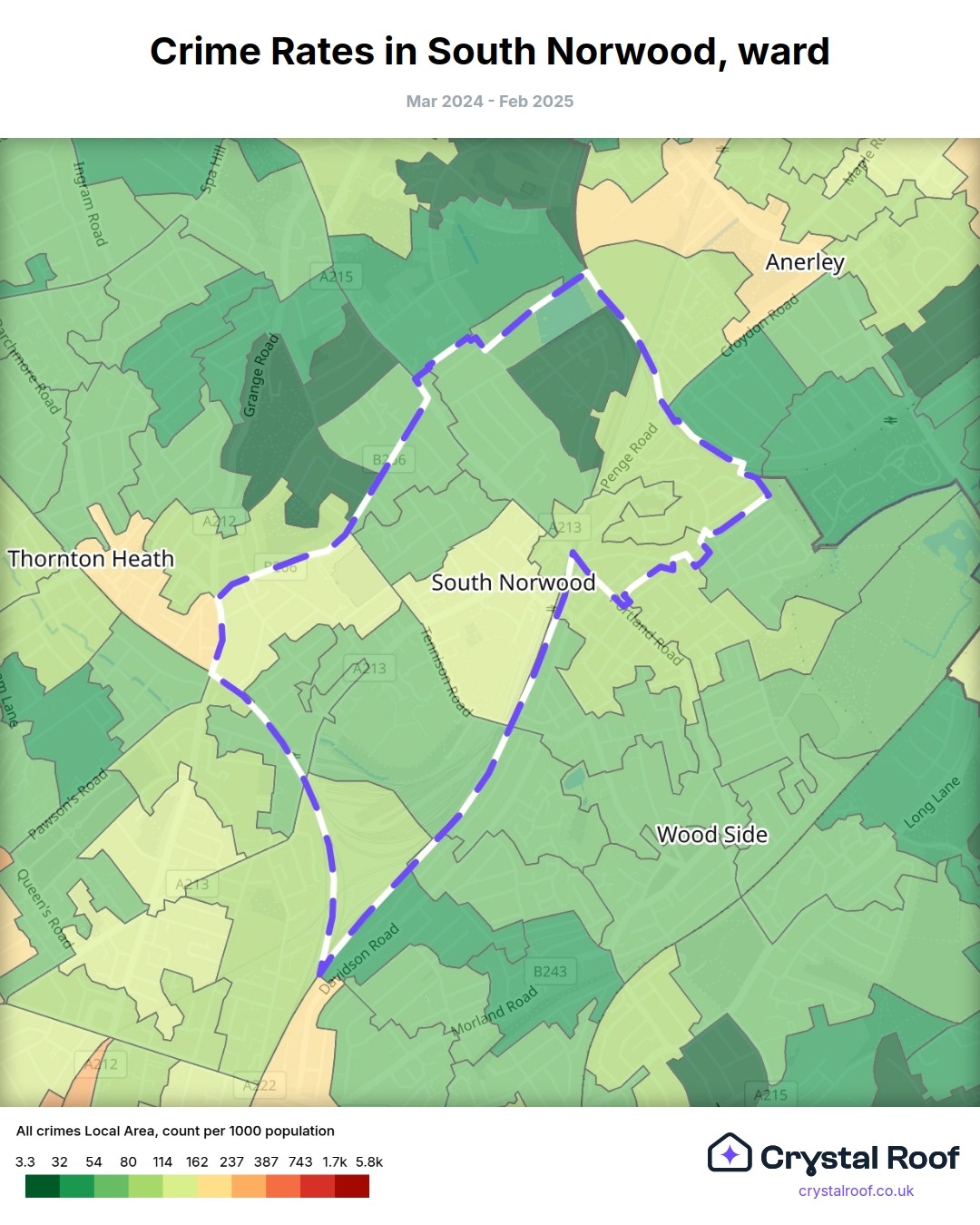 South Norwood, (ward) includes areas with the following crime ratings (see map):