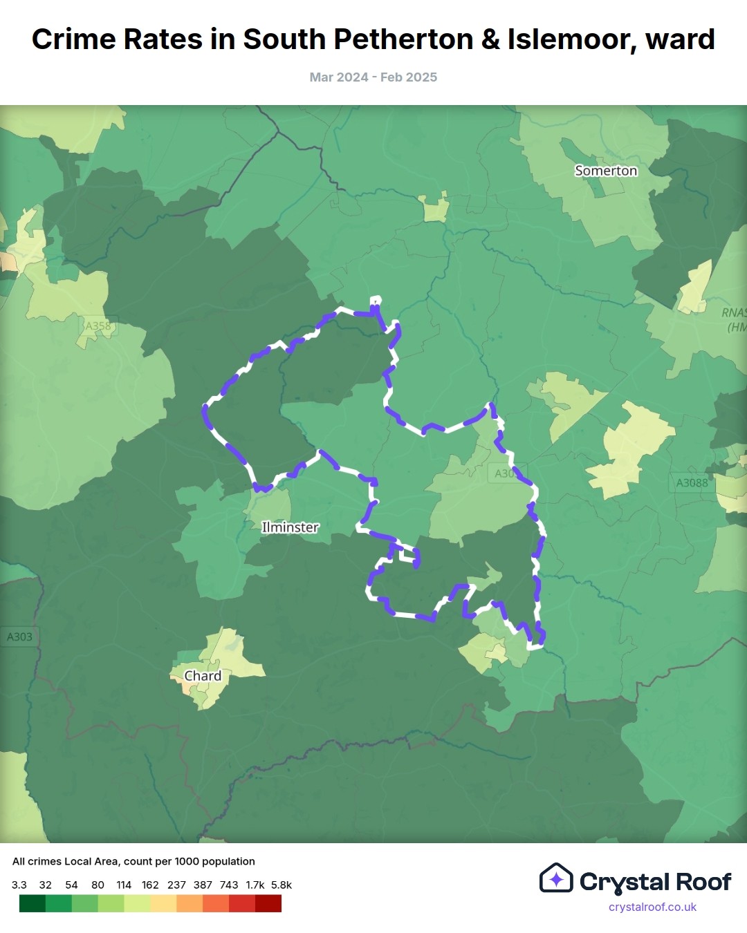 South Petherton & Islemoor, (ward) includes areas with the following crime ratings (see map):