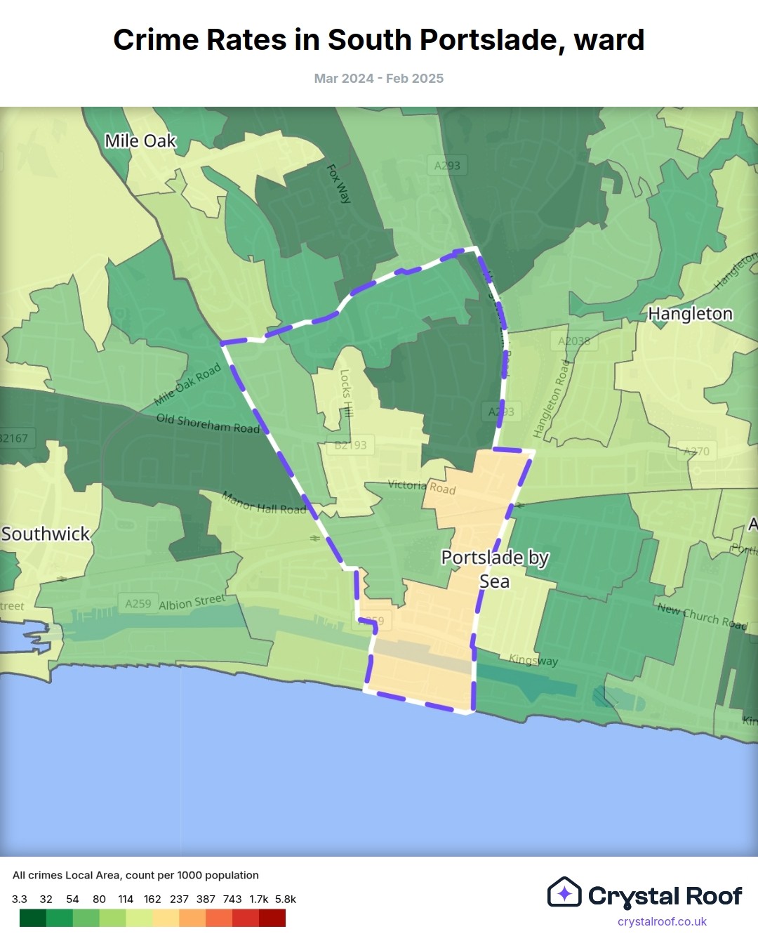 The figures in grey indicate the relative ratings of South Portslade (ward) for a specific crime type compared to other wards in England and Wales.