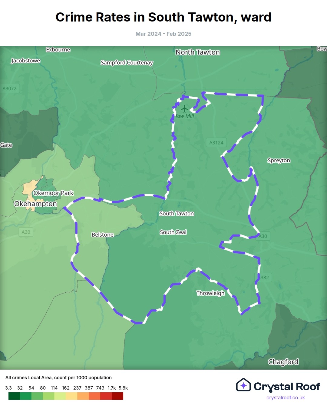 South Tawton, (ward) includes areas with the following crime ratings (see map):